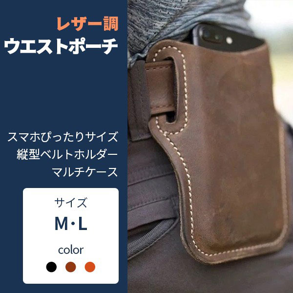 【即納】ウエストポーチ レザー調 高級感 縦型ベルトホルダー 出し入れ簡単 スマホケース 軽量 極薄 シンプル 薄型スマホ おしゃ...