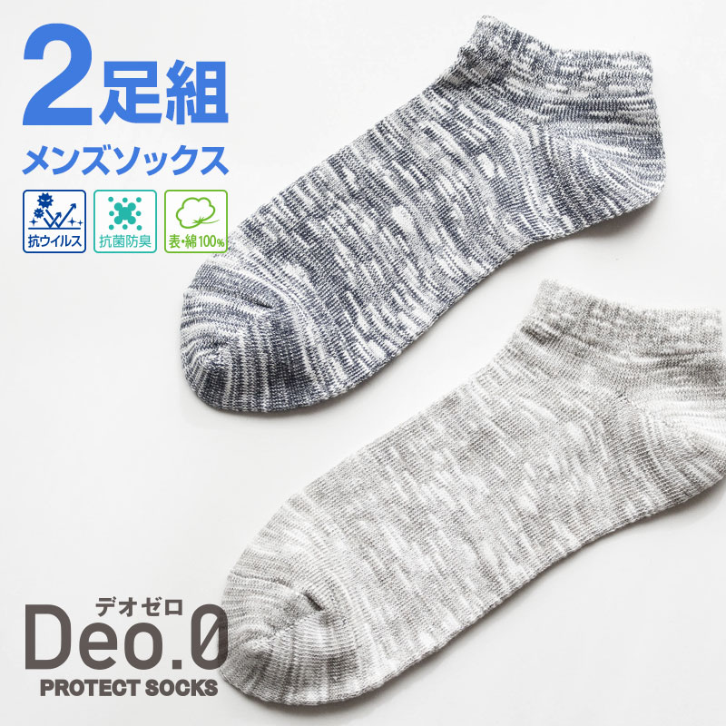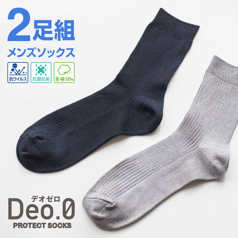 【2足組】 メンズ カジュアルソックス Deo.0(デオゼロ) 抗ウイルス加工 防臭加工 SEKマーク 25-27cm 靴下マルシ...