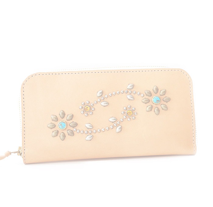 HTC Sunset Round Zipper Long Wallet Flower #3 TQS N / Natural
