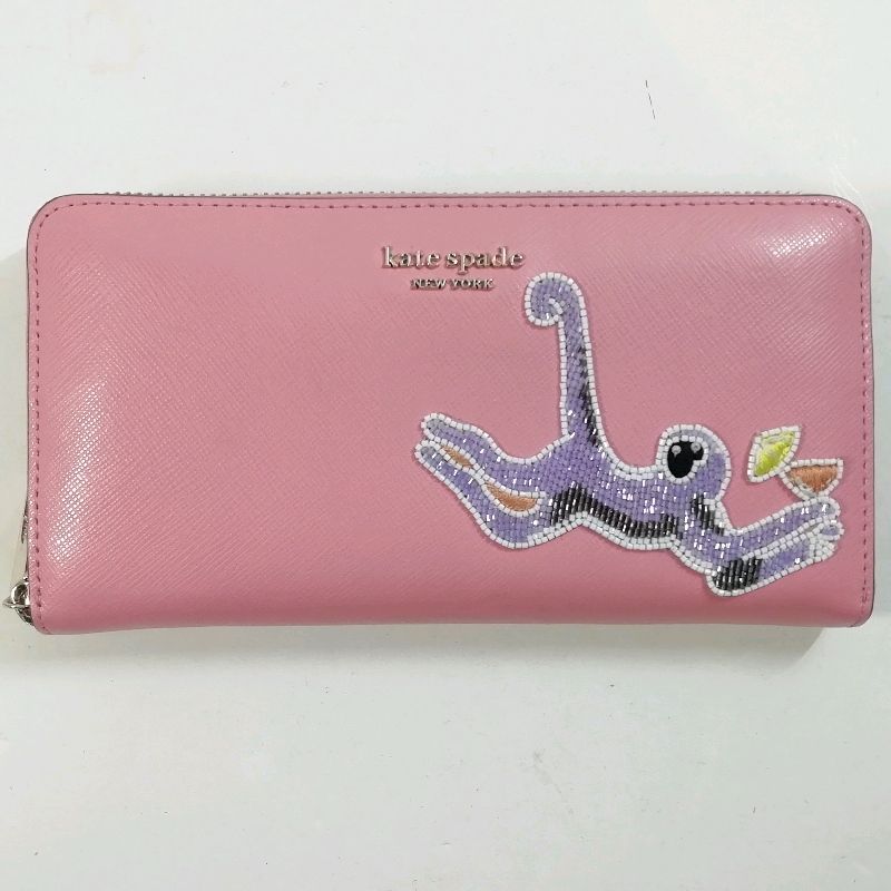 【中古】ケイトスペード ピンク モンキー柄 ラウンドファスナー長財布 PWRU7873