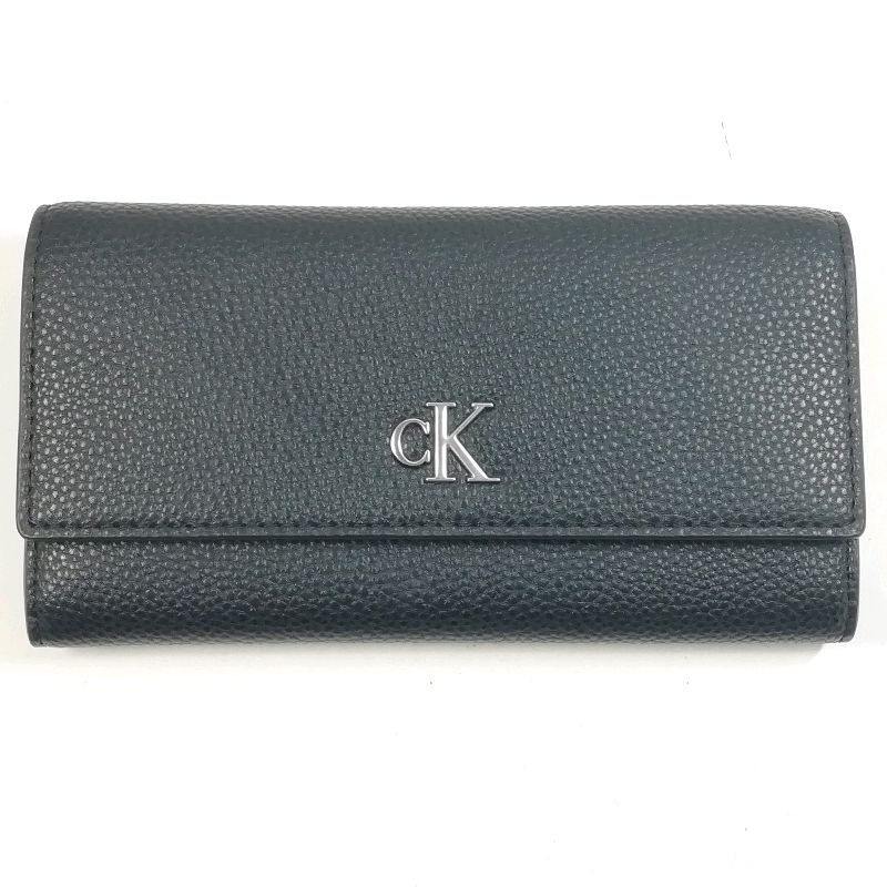 【中古】カルバンクライン 長財布 CKロゴ ブラック×合皮