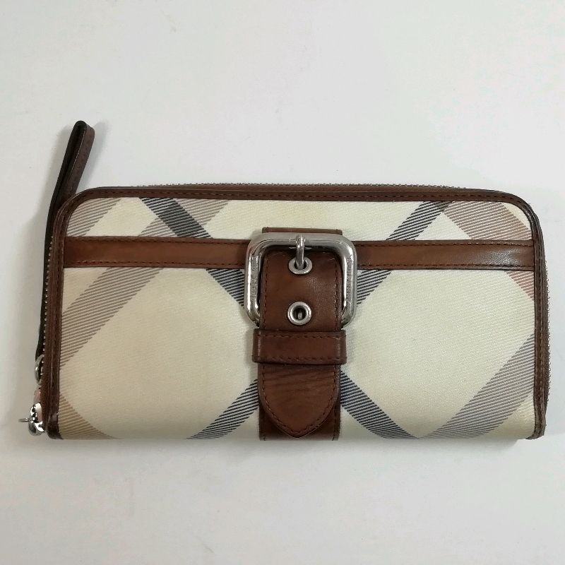 【中古】バーバリーブルーレーベル 長財布 チェック柄 ベージュ×ブラウン