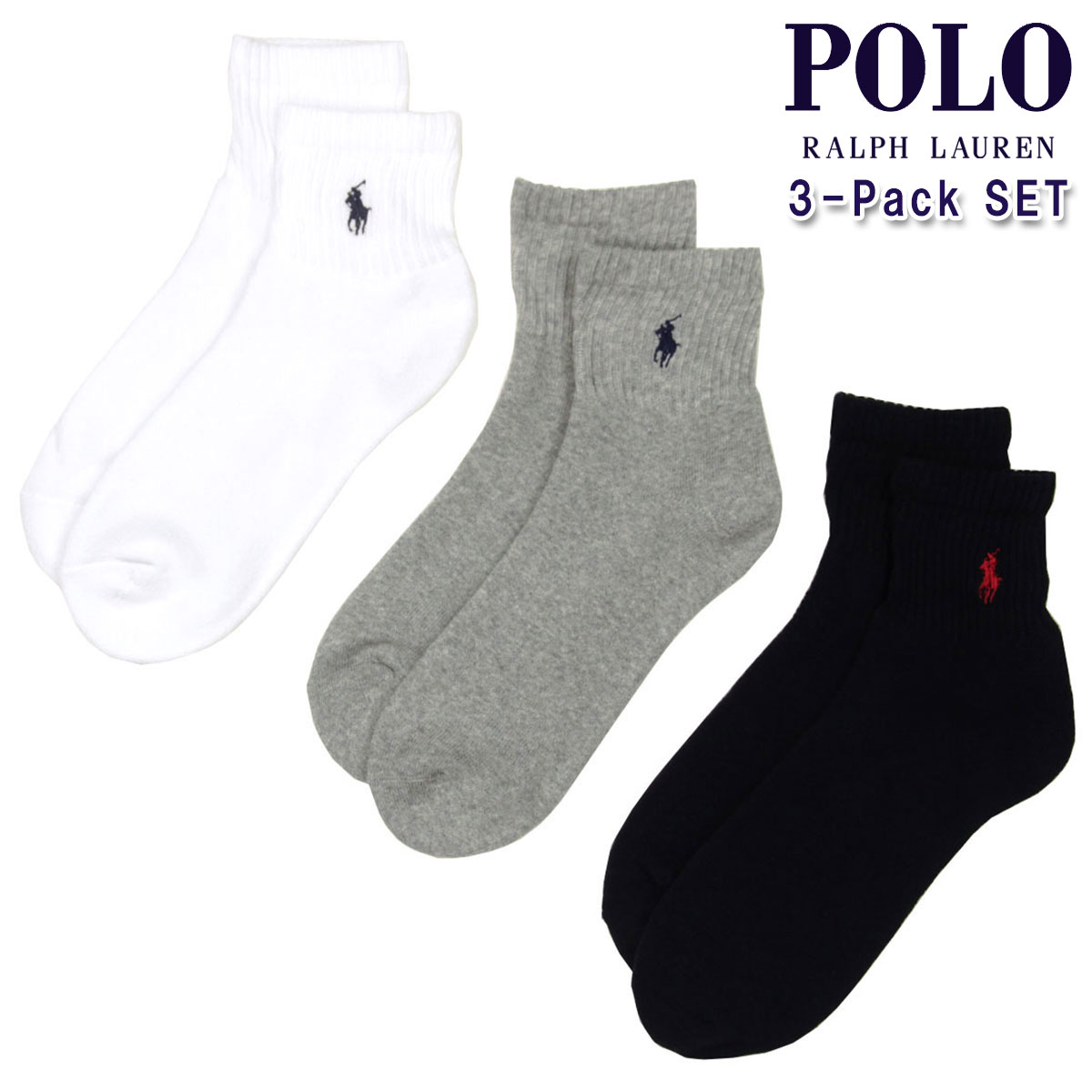 ポロ ラルフローレン POLO RALPH LAUREN 正規品 メンズ アンクル丈靴下 3足セット CLASSIC ANKLE ...
