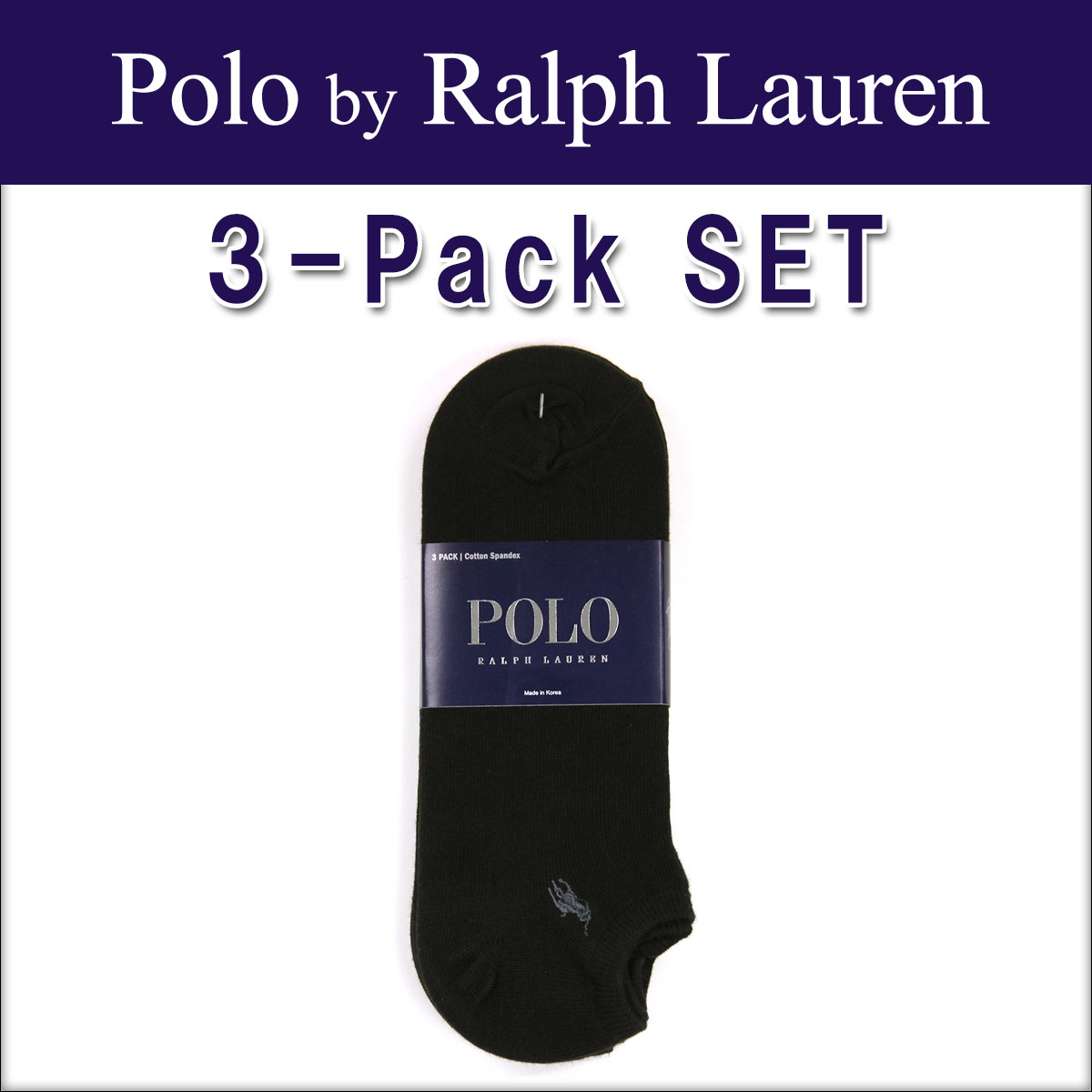 ポロ ラルフローレン POLO RALPH LAUREN 正規品 ソックス Ghost Socks 3-Pack BLACK A0...
