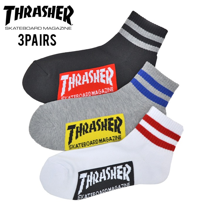 THRASHER スラッシャー ソックス MAG LOGO SOCKS 靴下 クォーターソックス クルーソックス 3足セット 3P...
