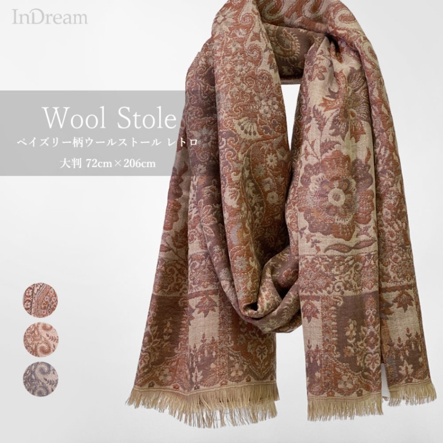 InDream ペイズリー柄 ウール ストール 大判 ベージュ 茶 ひざ掛け マフラー クリスマス ギフト おしゃれ 誕生日 プレ...