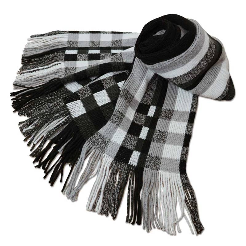 CUBIC MEASURE(キュービックメジャー) ニットマフラー メンズ アクリル100% 白×黒 ジャカード織り風 1110