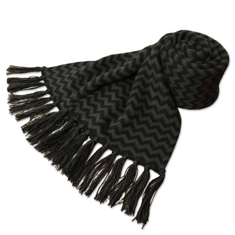 CUBIC MEASURE(キュービックメジャー) ニットマフラー メンズ アクリル100% シェブロン ストライプ チャコールグ...