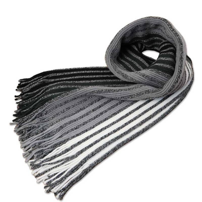 CUBIC MEASURE(キュービックメジャー) ニットマフラー メンズ アクリル100% 白×黒×グレー ストライプ 0221