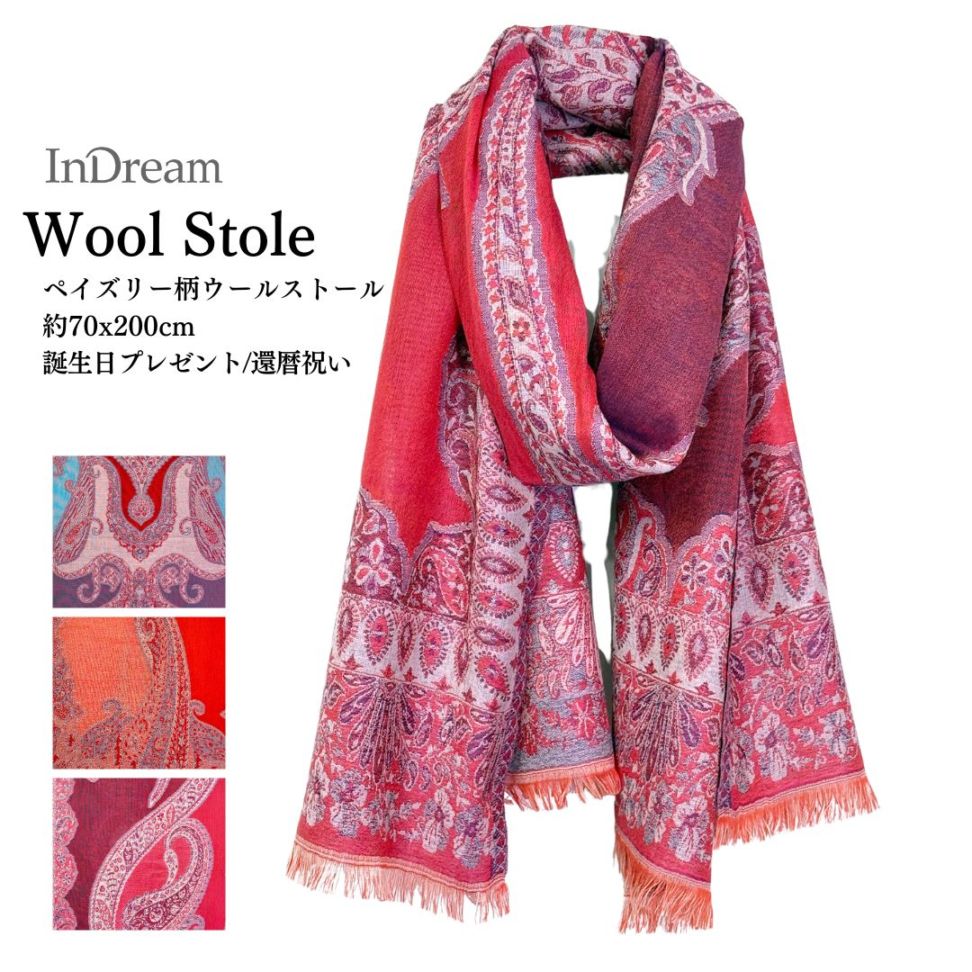 InDream ペイズリー柄 ウール ストール 大判[70cmx205cm]赤系 誕生日 プレゼント クリスマス ギフト 50代 ...