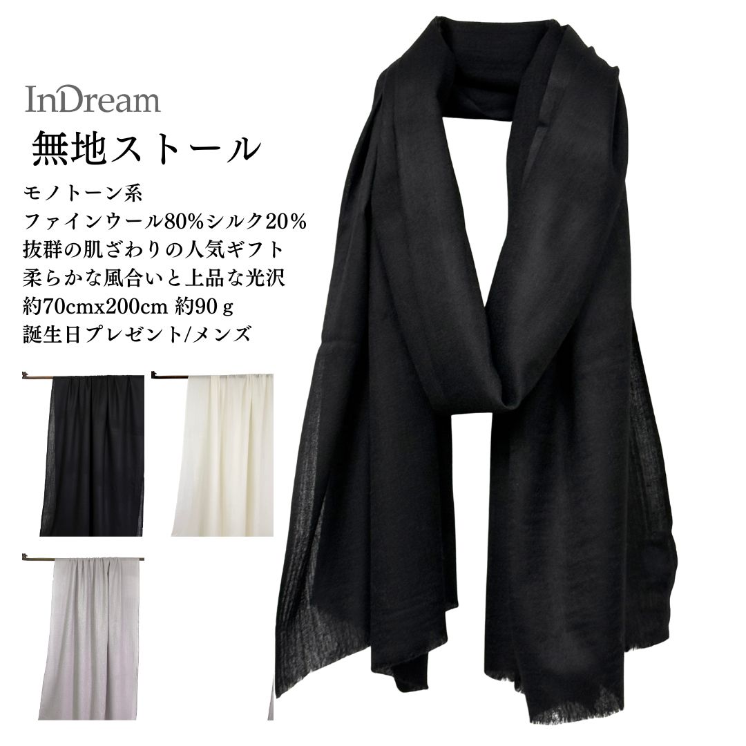 InDream ファインウールシルクストール 全15色 無地 還暦古希 冠婚葬祭 春 秋 冬 ひざ掛け 大判 マフラー クリスマス...