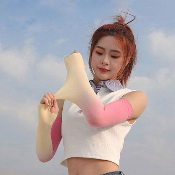 レディース 接触冷感 指穴付き グラデーション ロング アームカバー ひんやり UVカット 紫外線対策 スポーツ ドライブ ランニ...