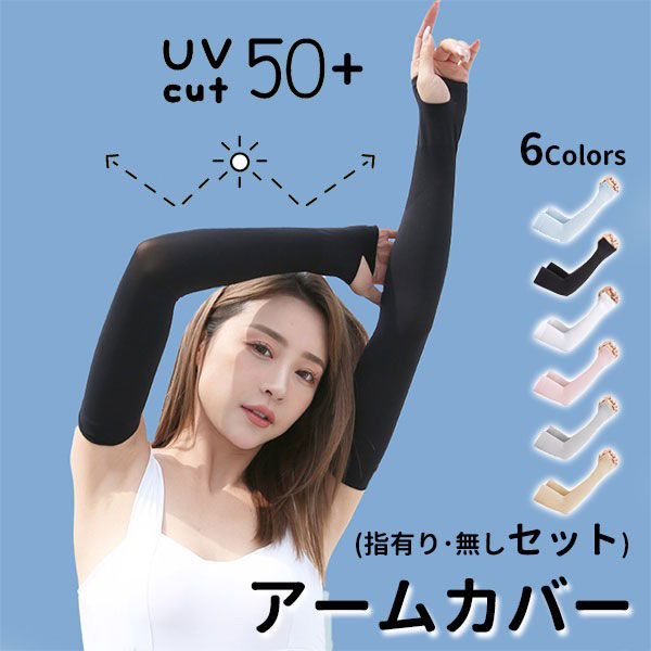 【セール】即納 安い カラー アームカバー UVカット 冷感 ロング 指なし 指あり 2枚セット 蚊よけ 腕カバー UV手袋 レデ...