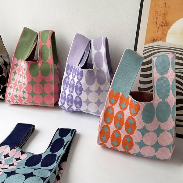 レディース ニットトートバッグ ワンサイズ 9デザイン エコバッグ 軽い 気分上がる 鮮やか 使い勝手良い サイズ アクセント た...