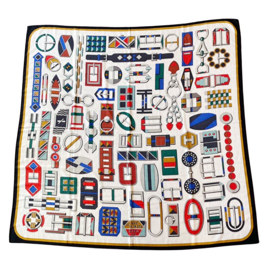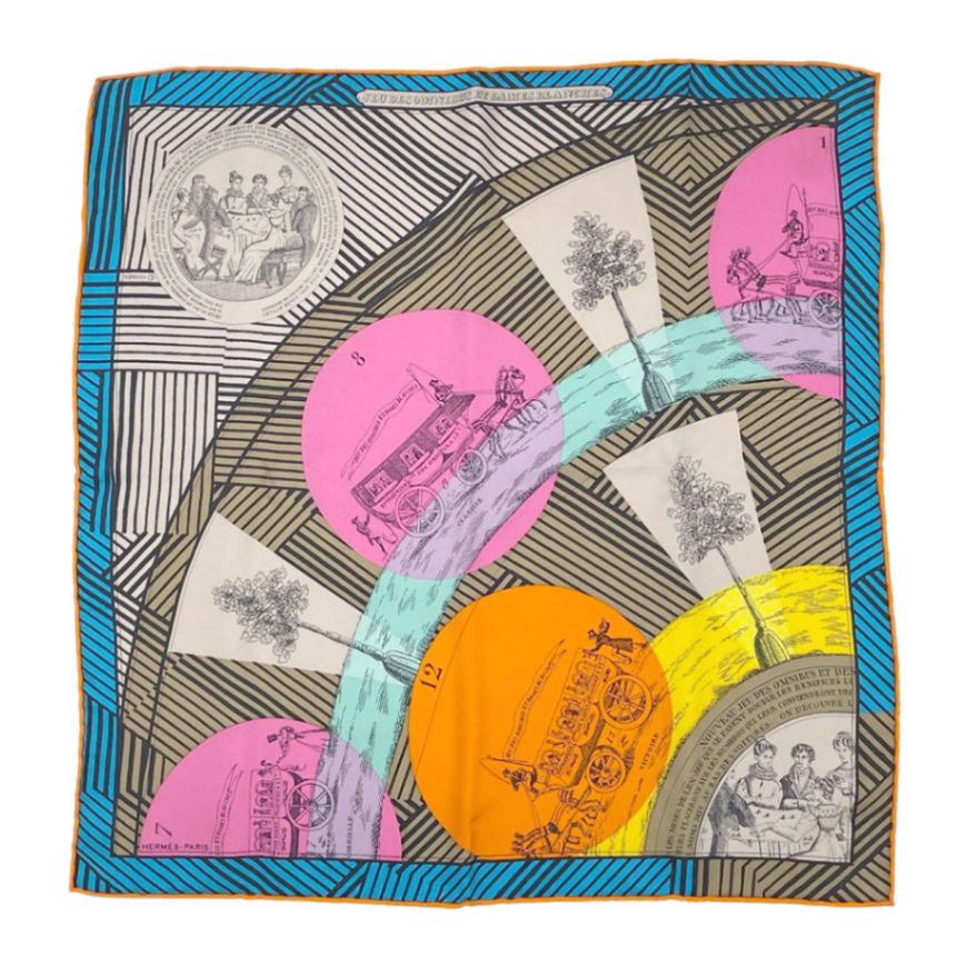 HERMES エルメス スカーフ カレ45 『JEU DES OMNIBUS ET DAMES BLANCHES(オムニバスと白い...