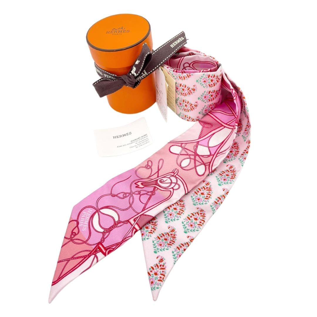 HERMES エルメス スカーフ ツイリー 『COUP DE FOUET AU BLOC (鞭・ブロック)』花・馬柄 シルク ピン...