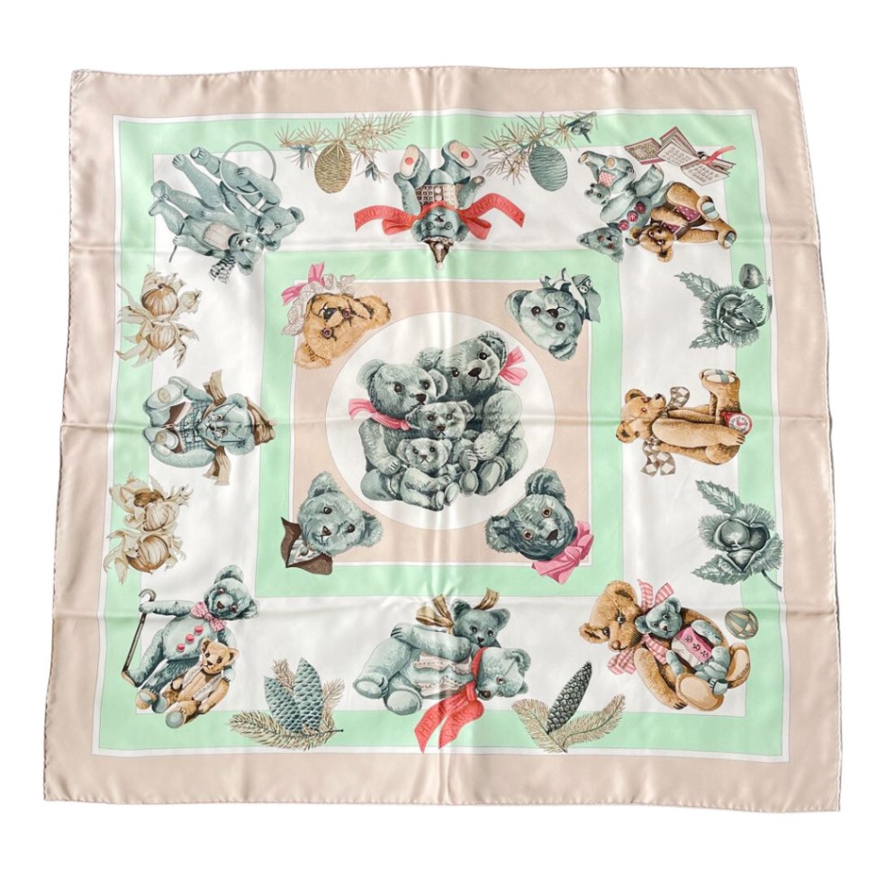 HERMES エルメス スカーフ カレ90 『CONFIDENTS DES COEURS(心の友)』 テディベア柄 シルク ベージ...