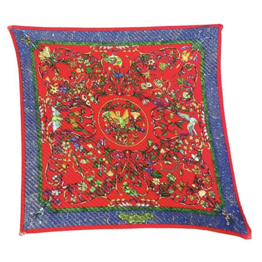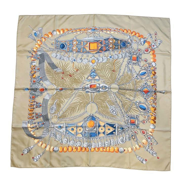 HERMES エルメス スカーフ カレ90 『TERRES PRECIEUSES(貴重な場所)』 シルク オレンジ ブルー ベージ...