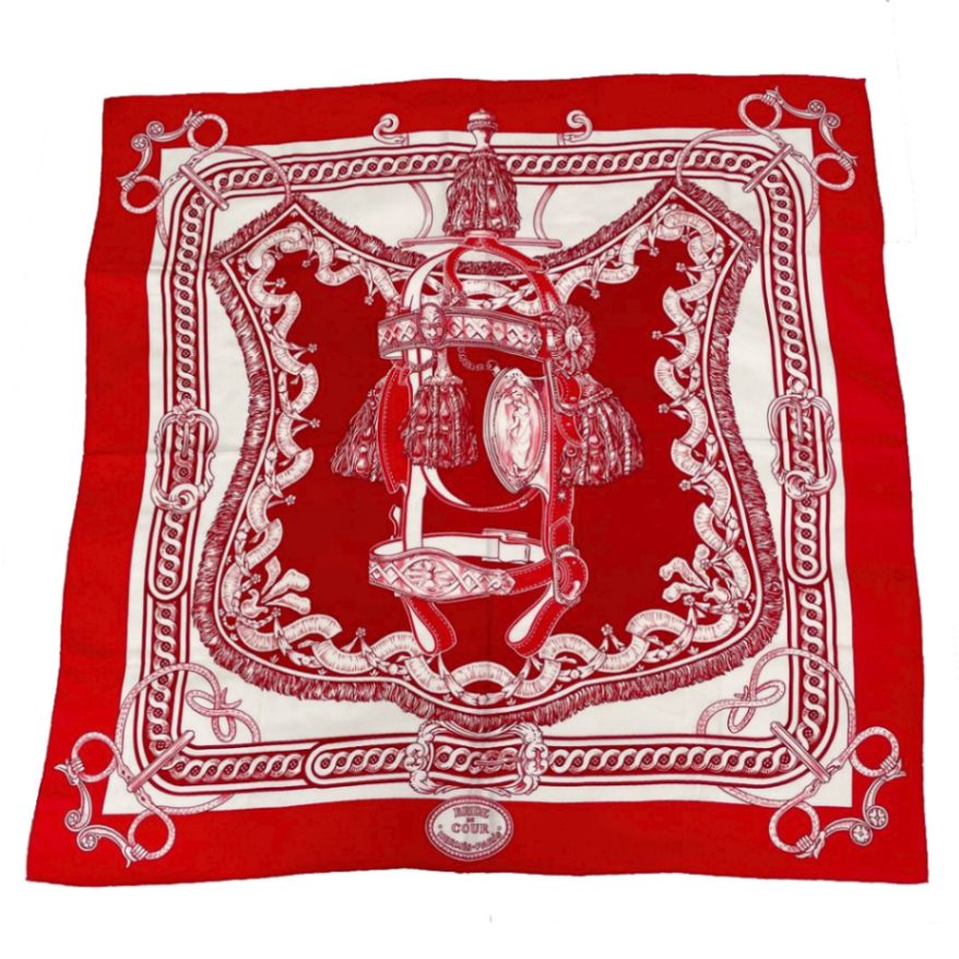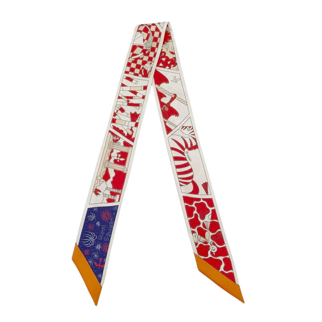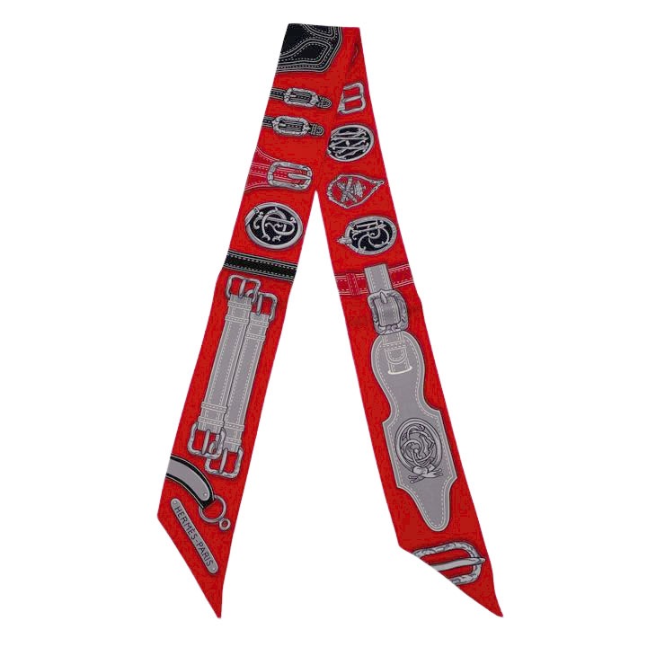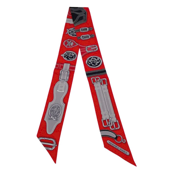 HERMES エルメス スカーフ ツイリー 『HARNAIS DES PRESIDENTS(大統領の馬具)』 シルク レッド系