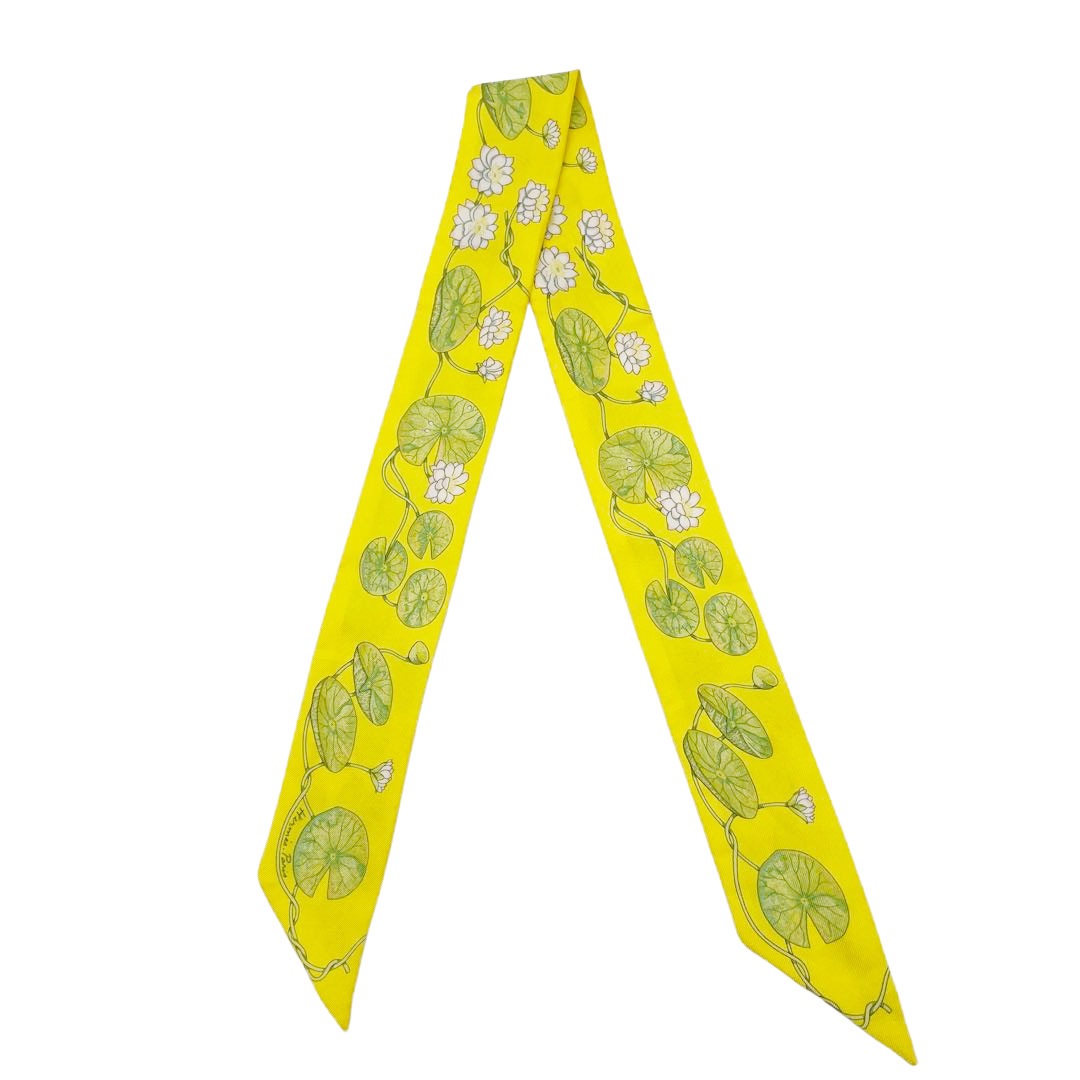HERMES エルメス スカーフ ツイリー 『FLEURS DE LOTUS(蓮の花)』 シルク イエロー ライトグリーン