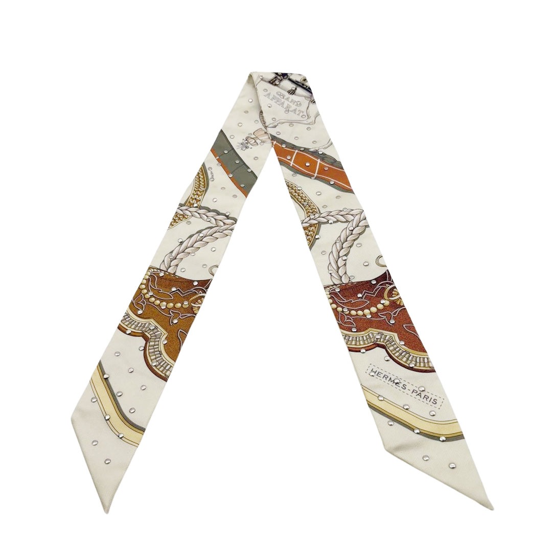 HERMES エルメス スカーフ ツイリー 『GRAND APPARAT グラン・アパラ(盛装の馬)』 スタッズ付き シルク CR...