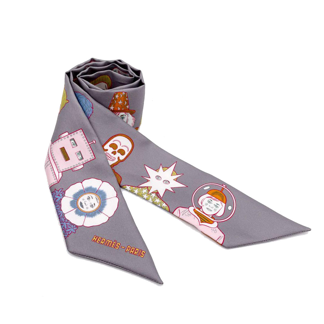 HERMES エルメス スカーフ ツイリー 『DRESS CODE(ドレスコード)』 シルク グレー系 2022SS