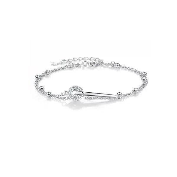 レディース シルバーブレスレット S925シルバー 2連チェーン サークルラインストーン 細め ビーズ ブレスレット アクセサリー...