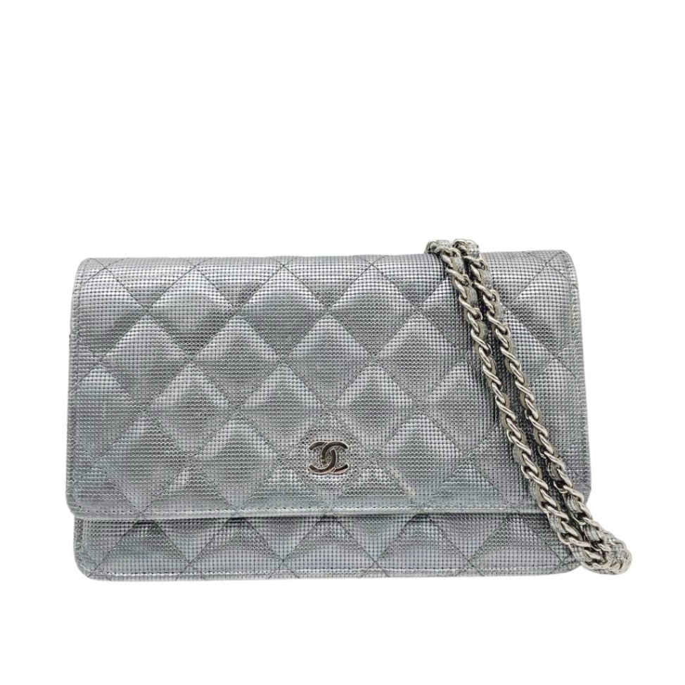 CHANEL シャネル マトラッセ チェーンウォレット 財布 レザー メタリックシルバー 21番台