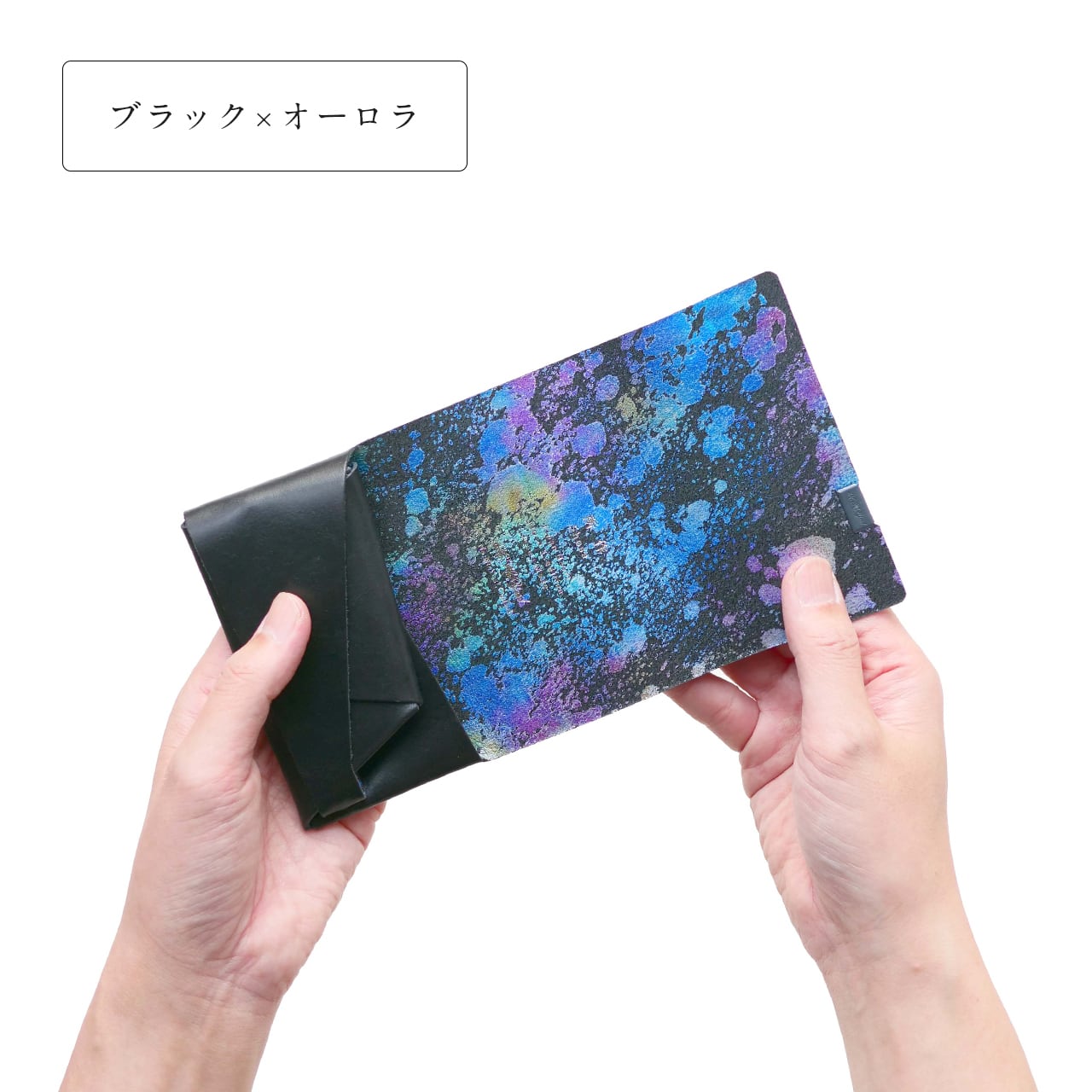 SHOSA・COIN CASE・BLACK×AURORA(ブラック黒×オーロラ内側)
