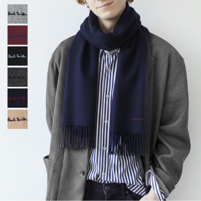 ポールスミス マフラー ブランド メンズ レディース 無地 ウール ラムウール おしゃれ ロゴ刺繍 ワンポイント 通勤 通学 防寒...