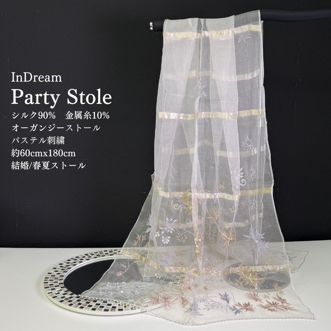 InDream シルク オーガンジー ストール ナチュラルホワイト ラベンダー ゴールド 古希 お祝い 結婚式 ストール パーティ...