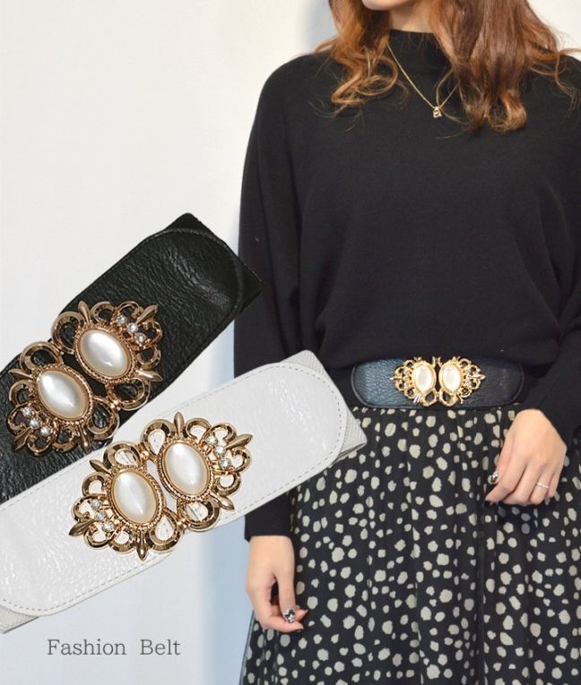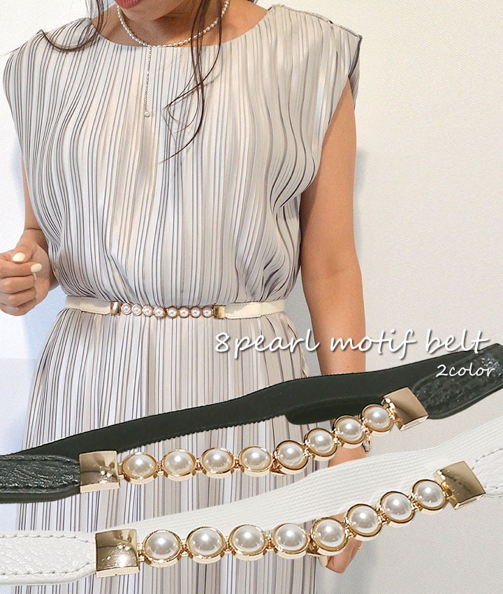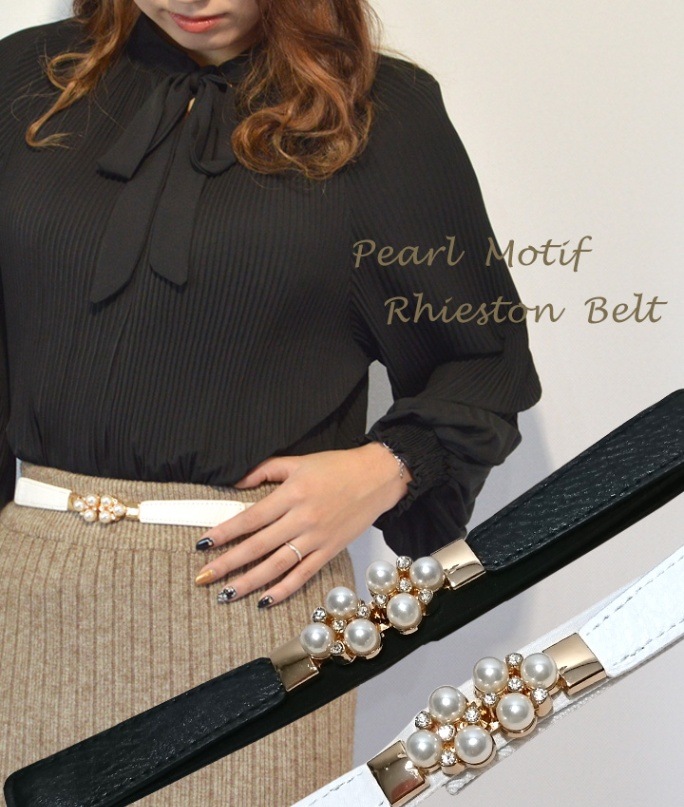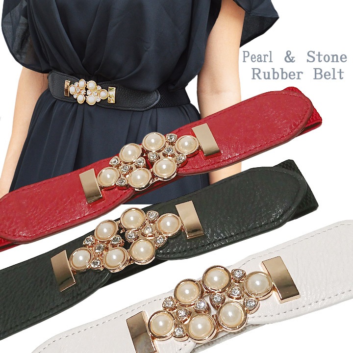 パールモチーフ細ゴムベルト