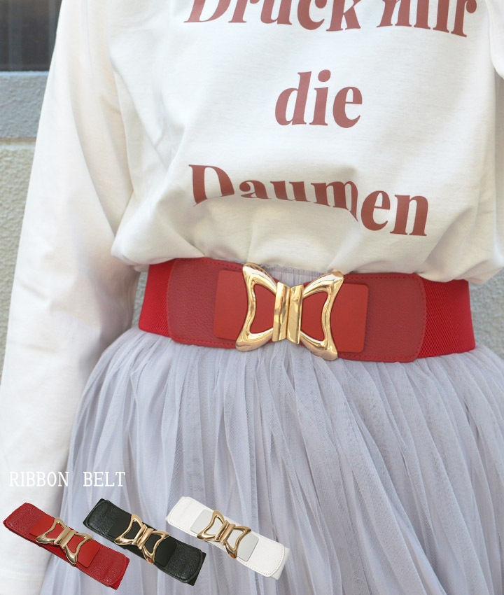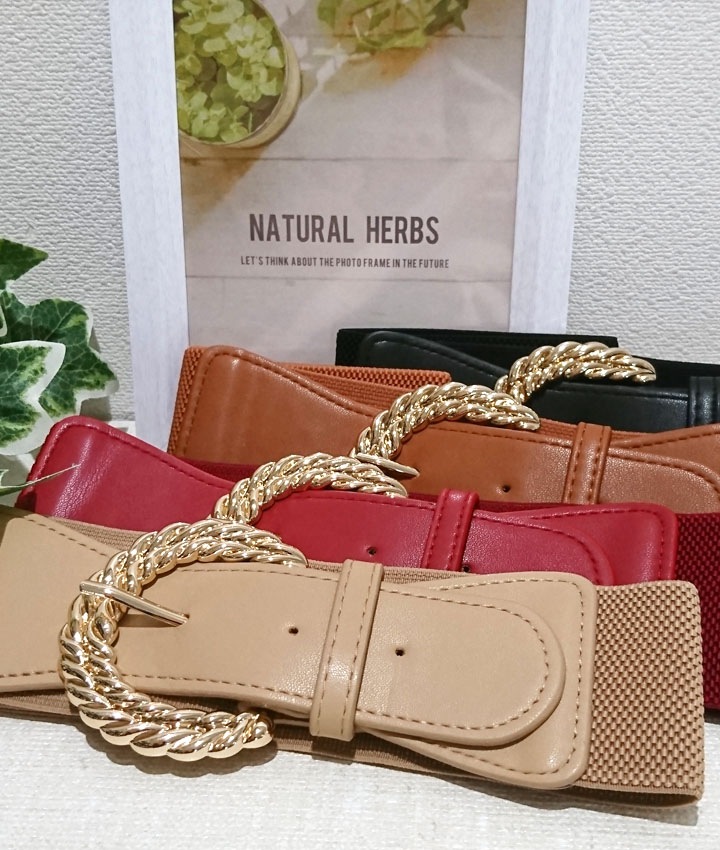 ゴールドリボンバックル太ゴムベルト