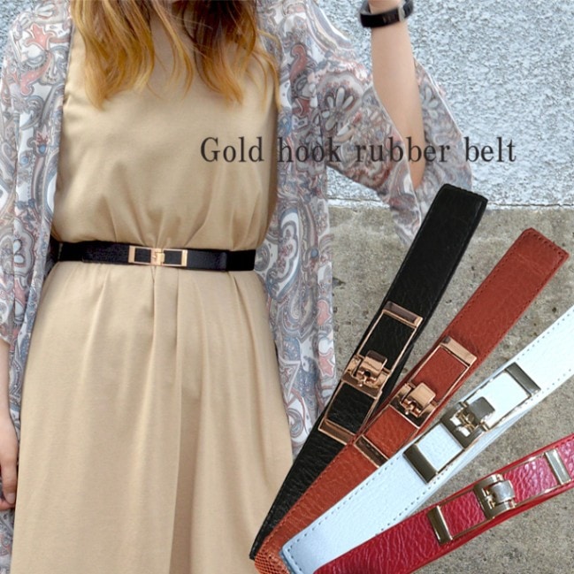 ゴールドフックバックル細ゴムベルト