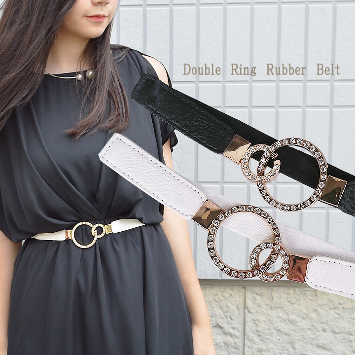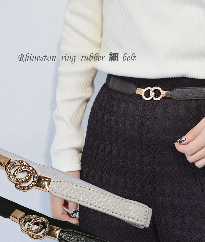 ラインストーン リングバックル細ゴムベルト