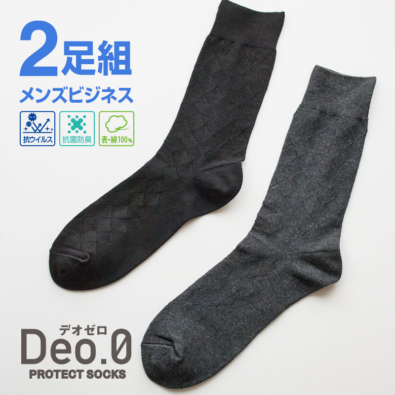 【2足組】 メンズ ビジネスソックス Deo.0(デオゼロ) 抗ウイルス加工 防臭加工 SEKマーク 25-27cm 靴下マルシェ...