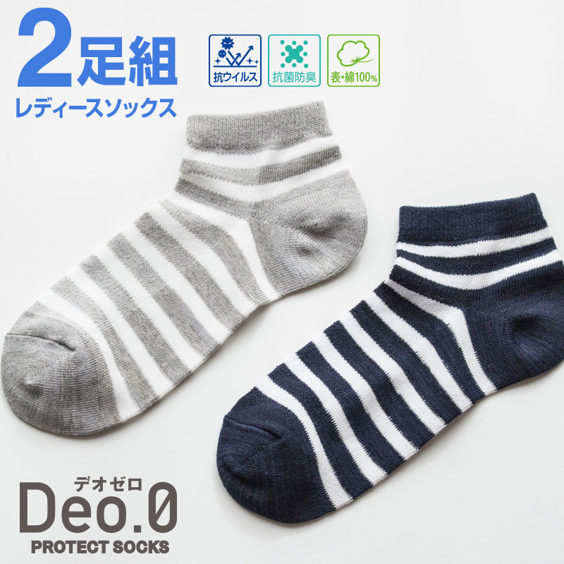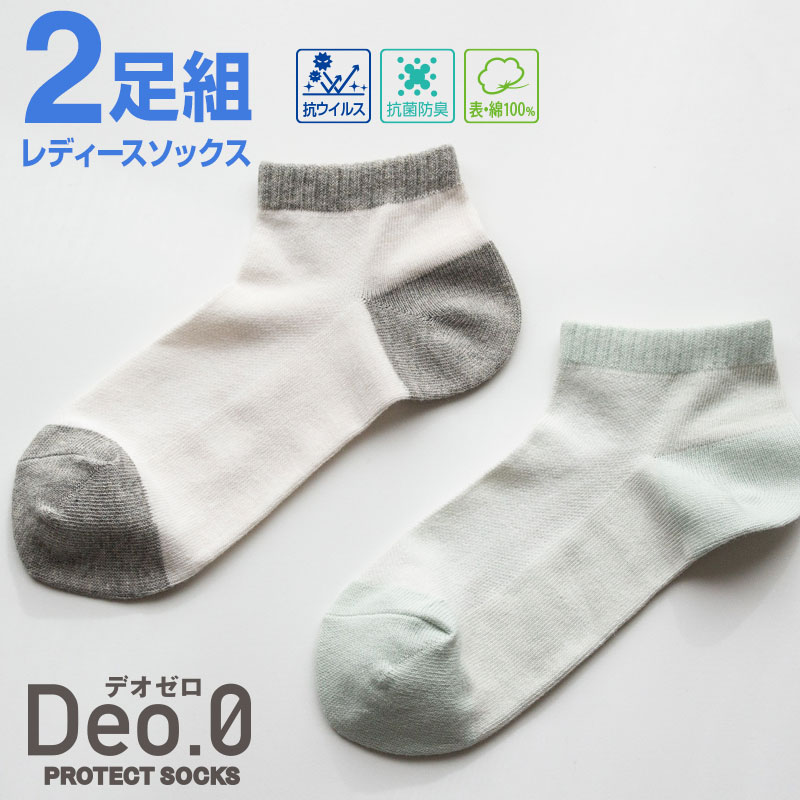 【2足組】 レディース カジュアルソックス Deo.0(デオゼロ) 抗ウイルス加工 防臭加工 SEKマーク 23-25cm 靴下マ...