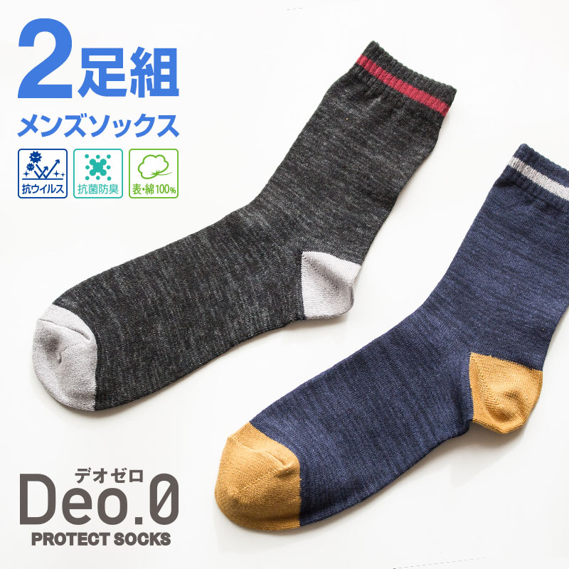 【2足組】 メンズ カジュアルソックス Deo.0(デオゼロ) 抗ウイルス加工 防臭加工 SEKマーク 25-27cm 靴下マルシ...