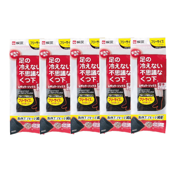 足の冷えない不思議なくつ下 レギュラーソックス厚手 ブラック フリー 1足 ×5【5個セット】送料無料 桐灰 冷え 靴下 あったか...