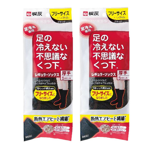 足の冷えない不思議なくつ下 レギュラーソックス厚手 ブラック フリー 1足×2 【ネコポス】【2個セット】送料無料 桐灰 冷え 靴...