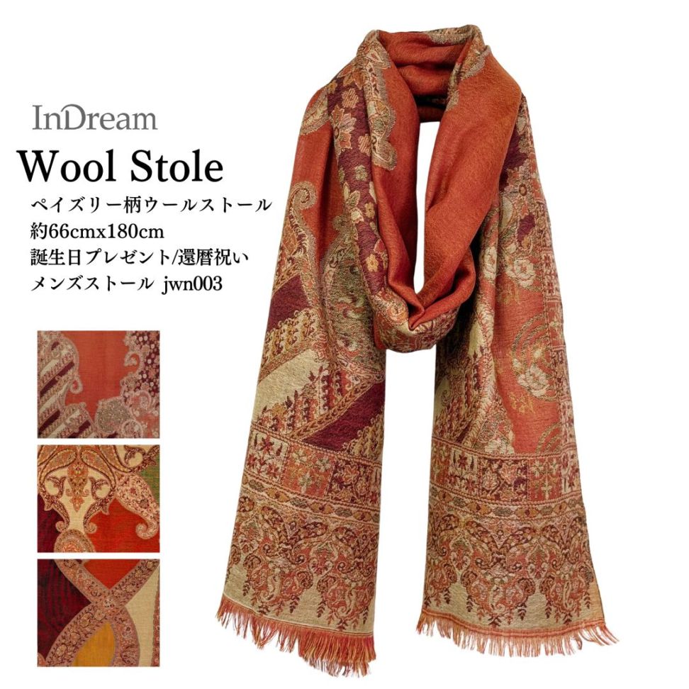 InDream ペイズリー柄 ウール ストール 大判[70cmx205cm]赤系 誕生日 プレゼント クリスマス ギフト 50代 ...