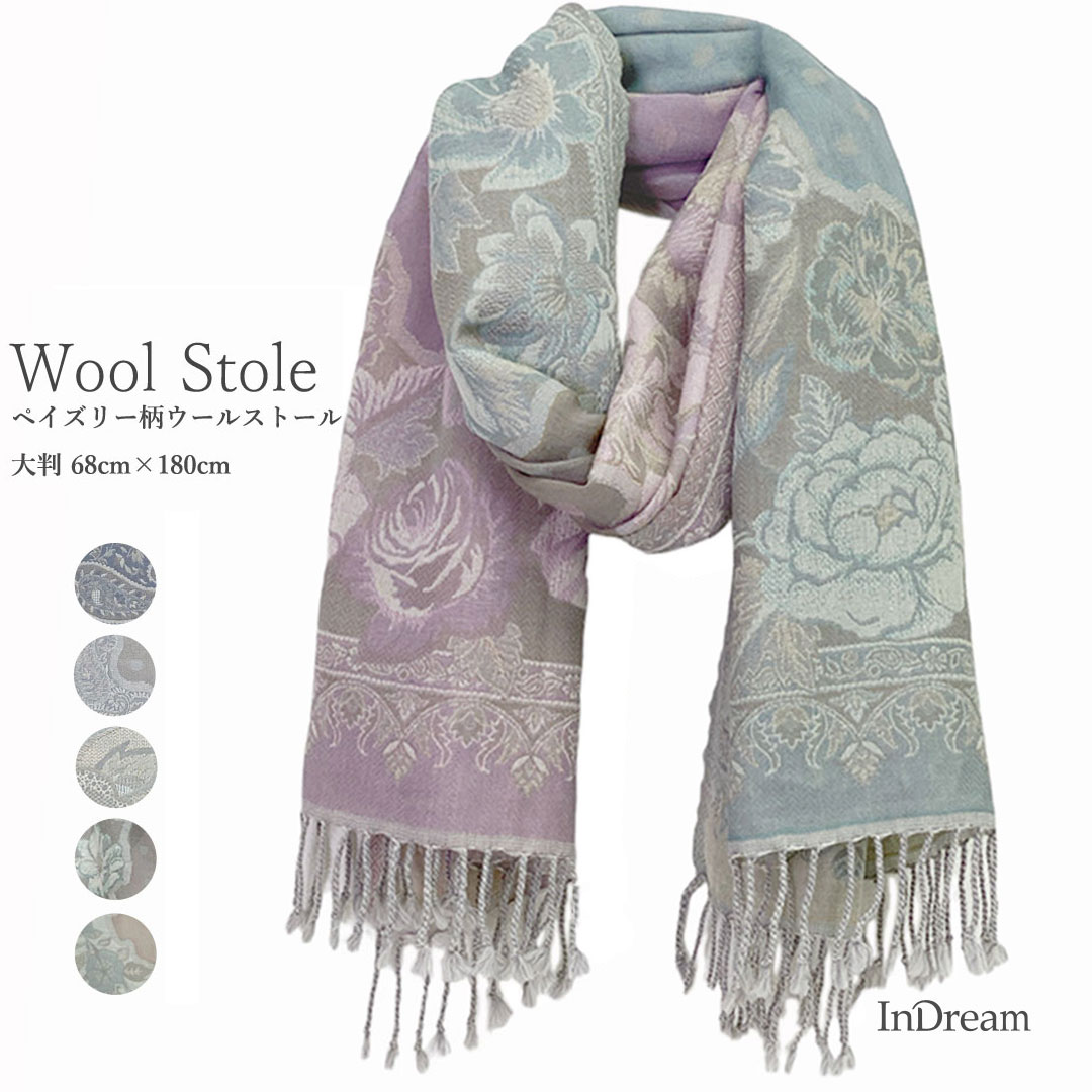 InDream ペイズリー柄 ウール ストール 一点もの 大判 [68cmx180cm] グレー/ホワイト グリーン/ベージュ/ピ...