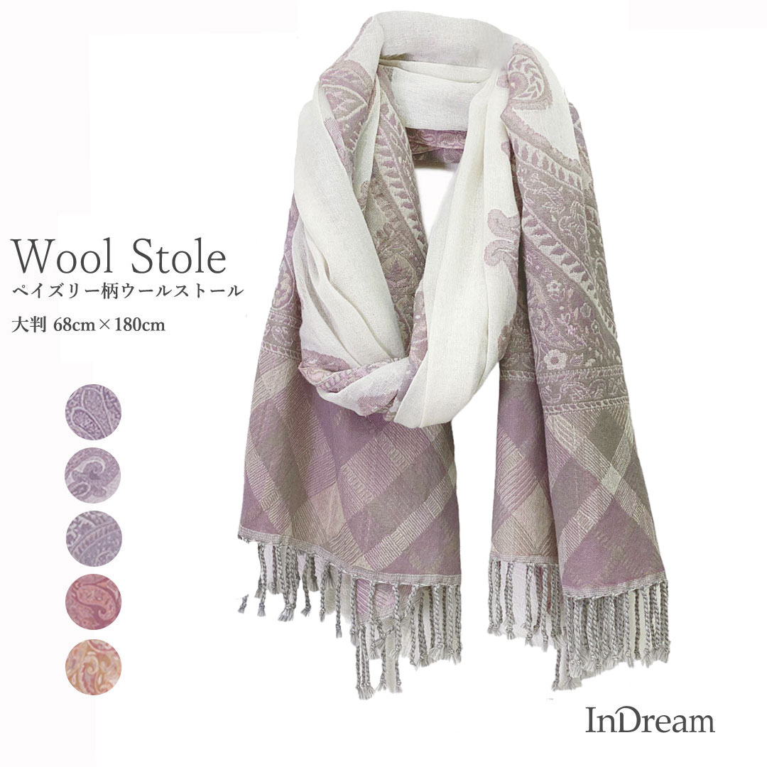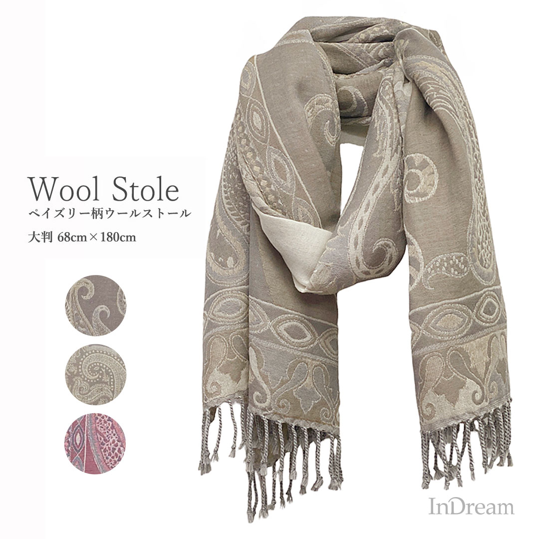 InDream ペイズリー柄 ウール ストール 一点もの 大判 [68cmx180cm] ベージュ/グレー ピンク/グレー クリス...