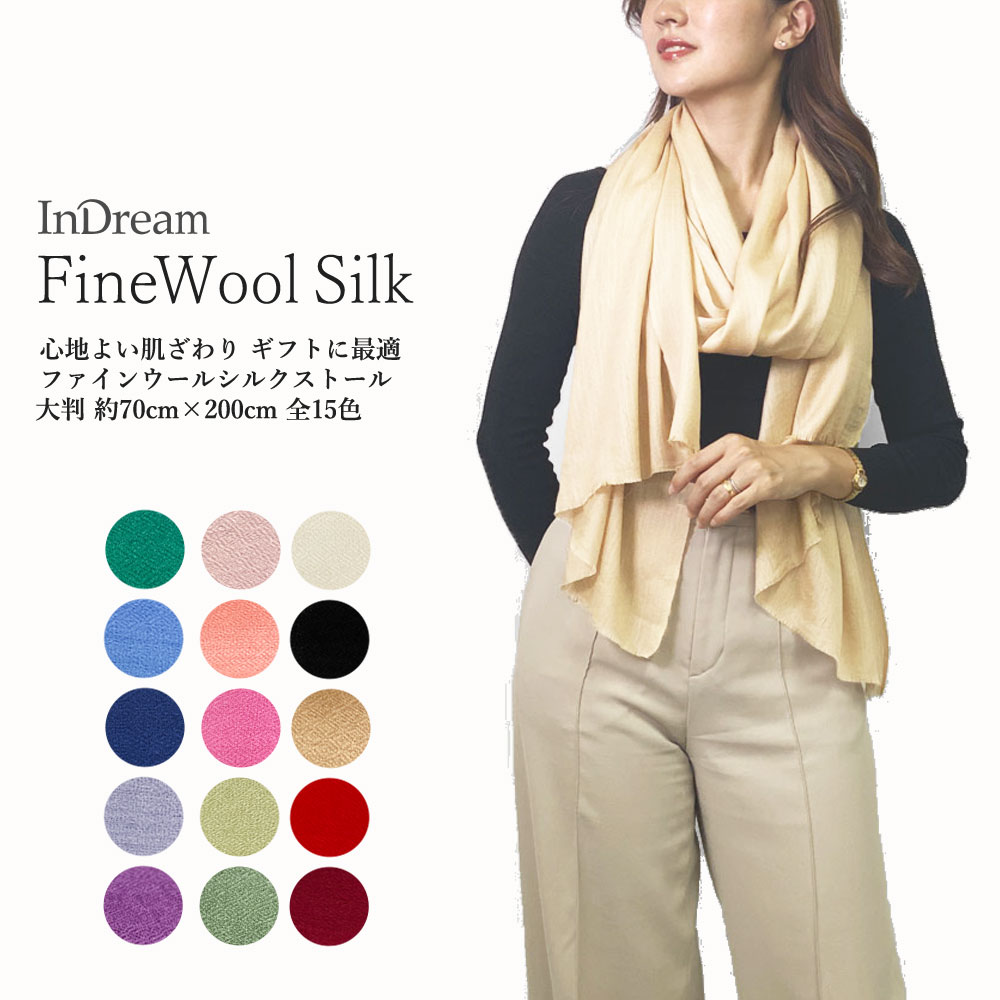 InDream ファインウールシルクストール 全15色 無地 還暦古希 冠婚葬祭 春 秋 冬 ひざ掛け 大判 マフラー クリスマス...
