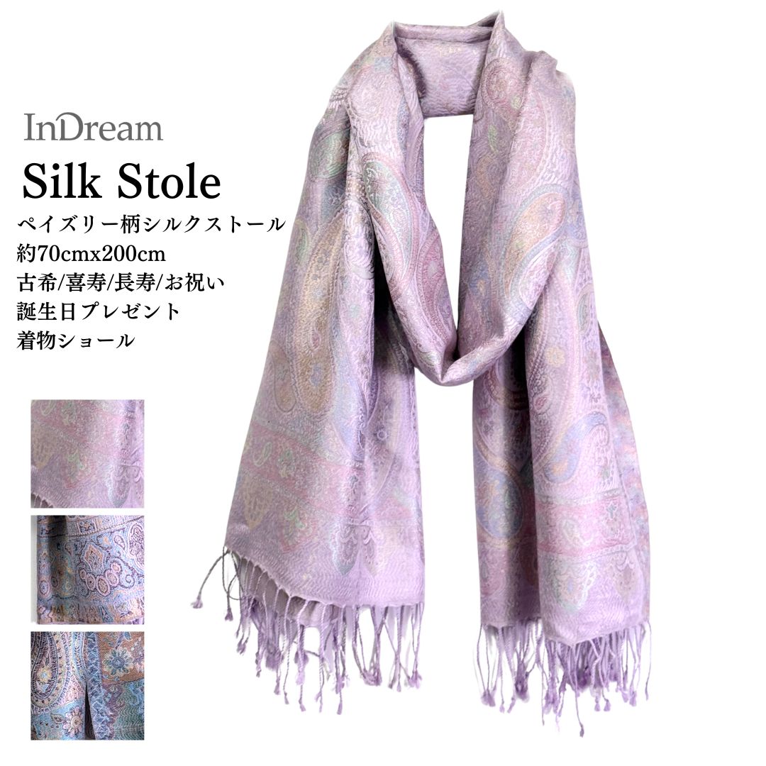 InDream ペイズリー柄 シルク ストール 大判 70cmx200cm 紫/パープル 春 秋冬 古希 お祝い 母の日 ギフト ...
