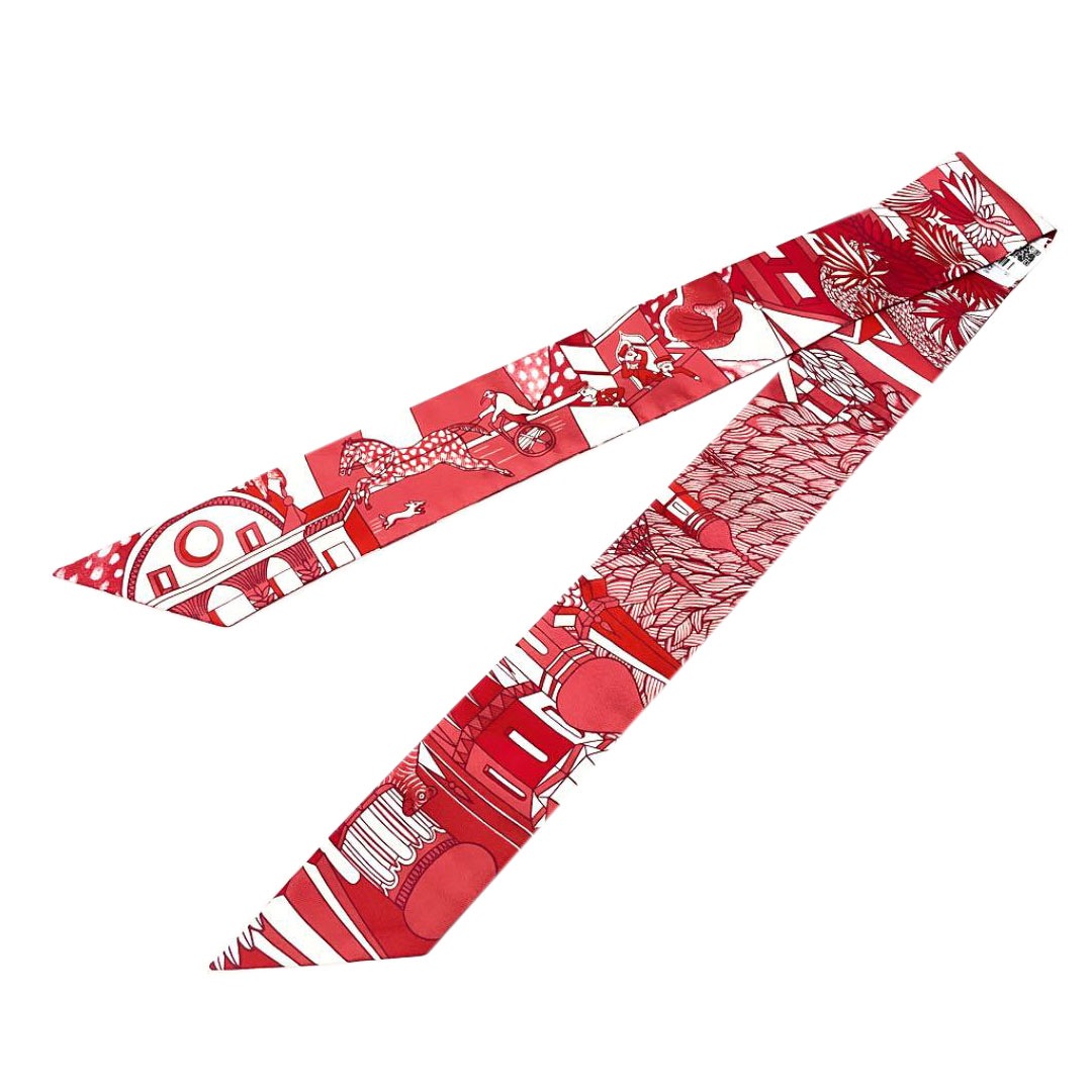HERMES エルメス スカーフ ツイリー 『ANIMAPOLIS(アニマポリス)』 シルク レッド ホワイト