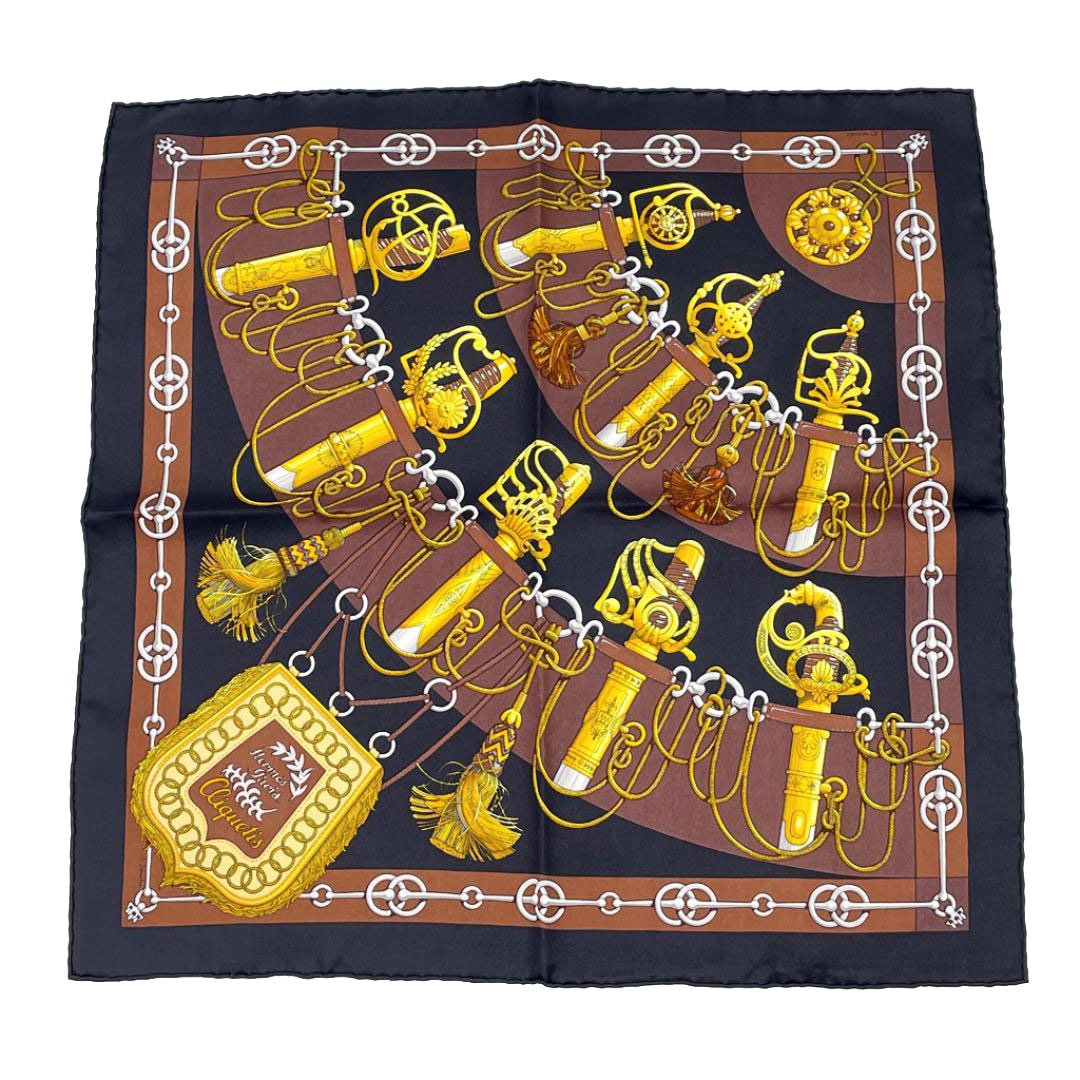 HERMES エルメス スカーフ カレ45 『CLIQUETIS(剣柄)』シルク ブラウン ブラック