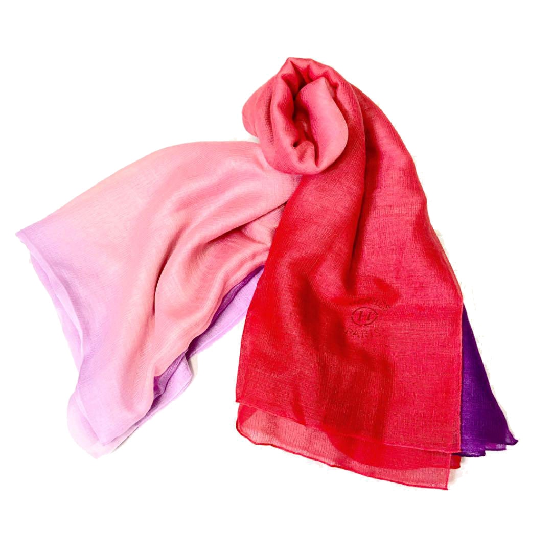 HERMES エルメス 大判ストール ショール カシミア シルク レッド ピンク パープル
