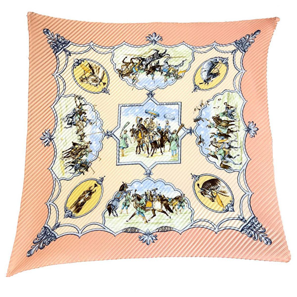 HERMES エルメス プリーツスカーフ 『LES CHEVAUX DES MOGHOLS(ムガル王朝の馬)』 シルク ピンク