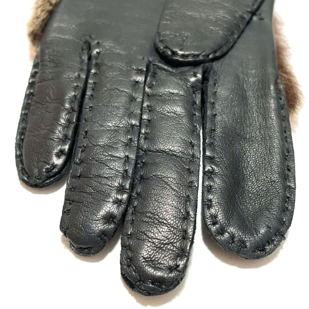 CHANEL シャネル ファー レザー グローブ 手袋 ブラック ブラウン 6.5サイズ